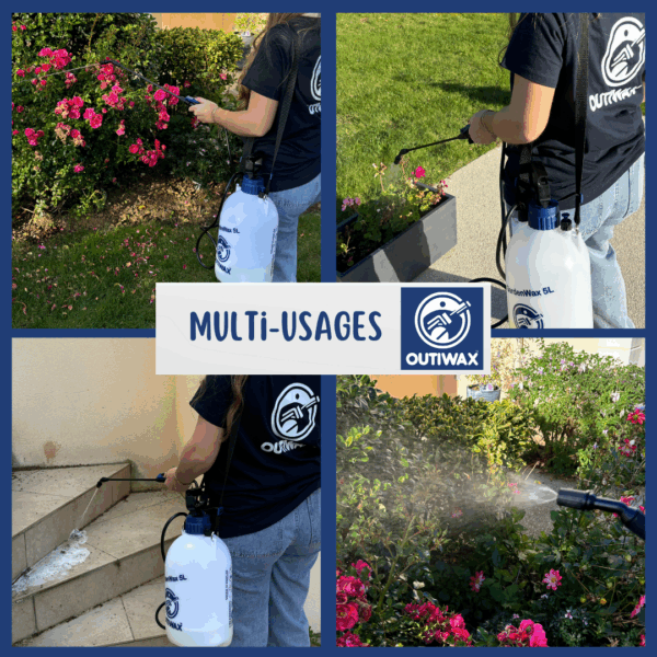 • Un pulvérisateur manuel GardenWax de 5 litres, conçu pour une application précise et homogène des solutions nettoyantes.