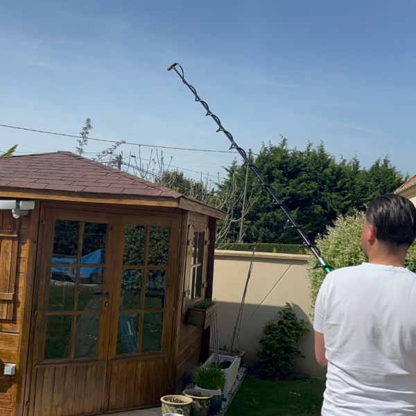 - Portée jusqu'à 5m40 sans échelle : Traitez vos toitures, façades et arbres en toute sécurité depuis le sol. Disponible en 3m20 et 5m40 pour s'adapter à tous vos chantiers de hauteur.