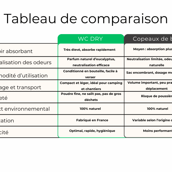 La poudre absorbante pour toilettes sèches neutralise efficacement les odeurs et assèche les liquides. Naturelle et pratique, elle facilite l’entretien quotidien des WC écologiques et améliore le confort d’utilisation.
